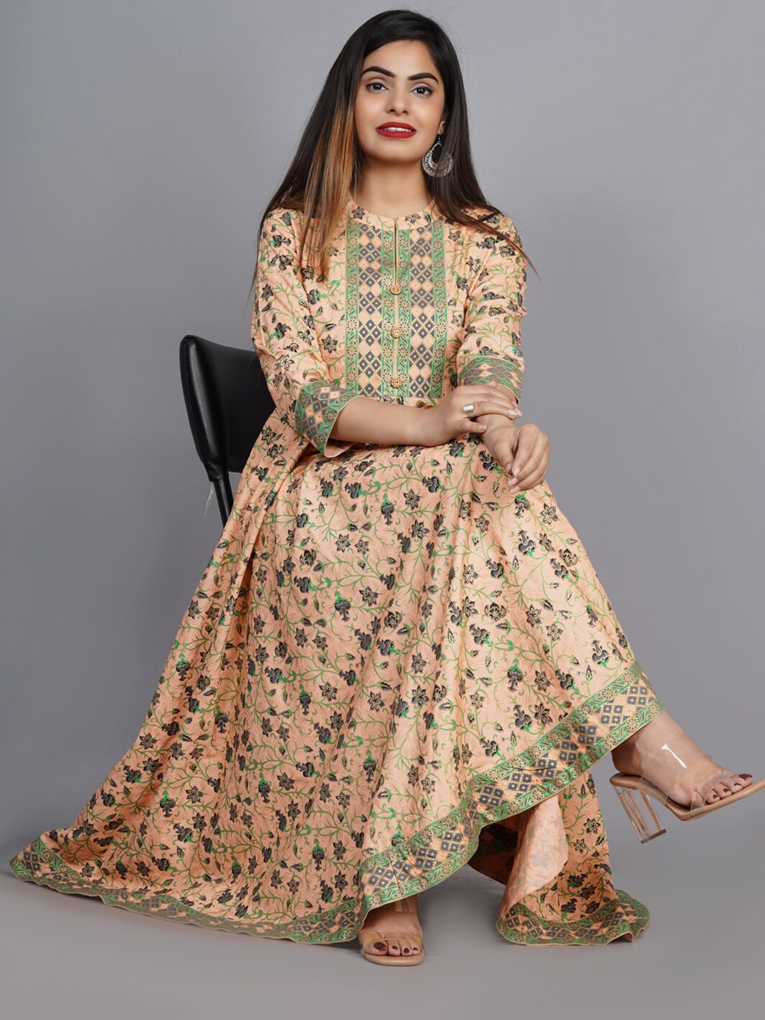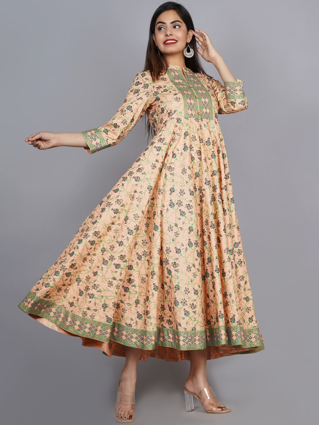 Kalini Women Coral Pink Floral Print Anarkali Kurta Product Details Colour: coral Floral printed Boat neck Short, puff sleeves Anarkali shape w...