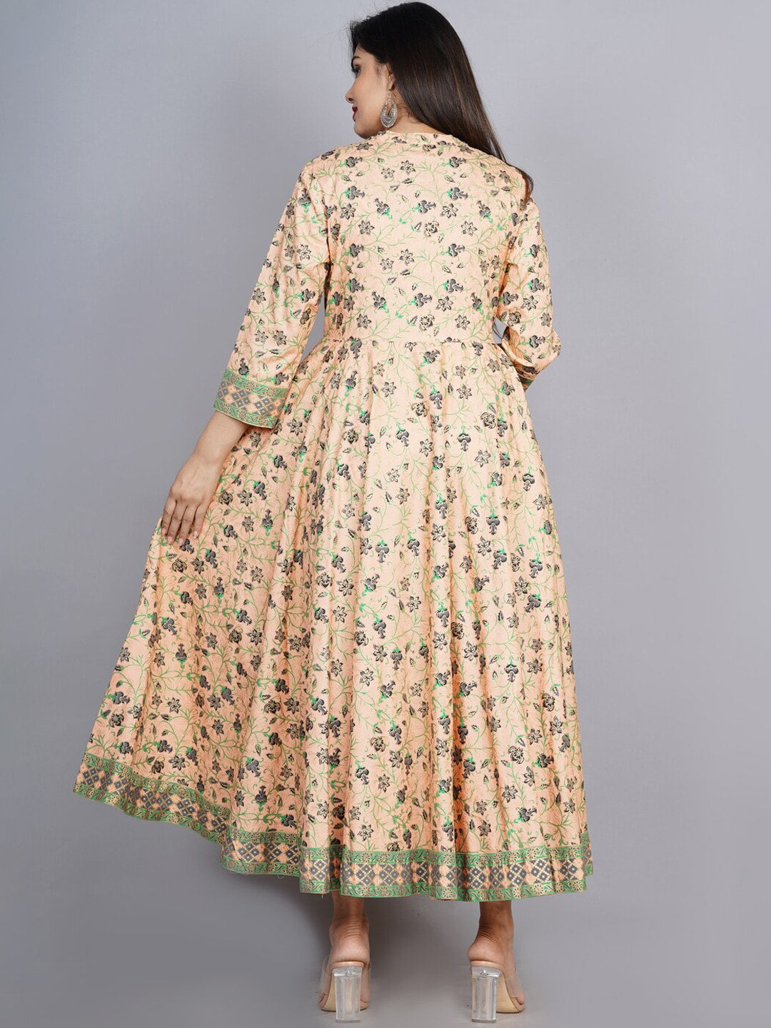 Kalini Women Coral Pink Floral Print Anarkali Kurta - Distacart