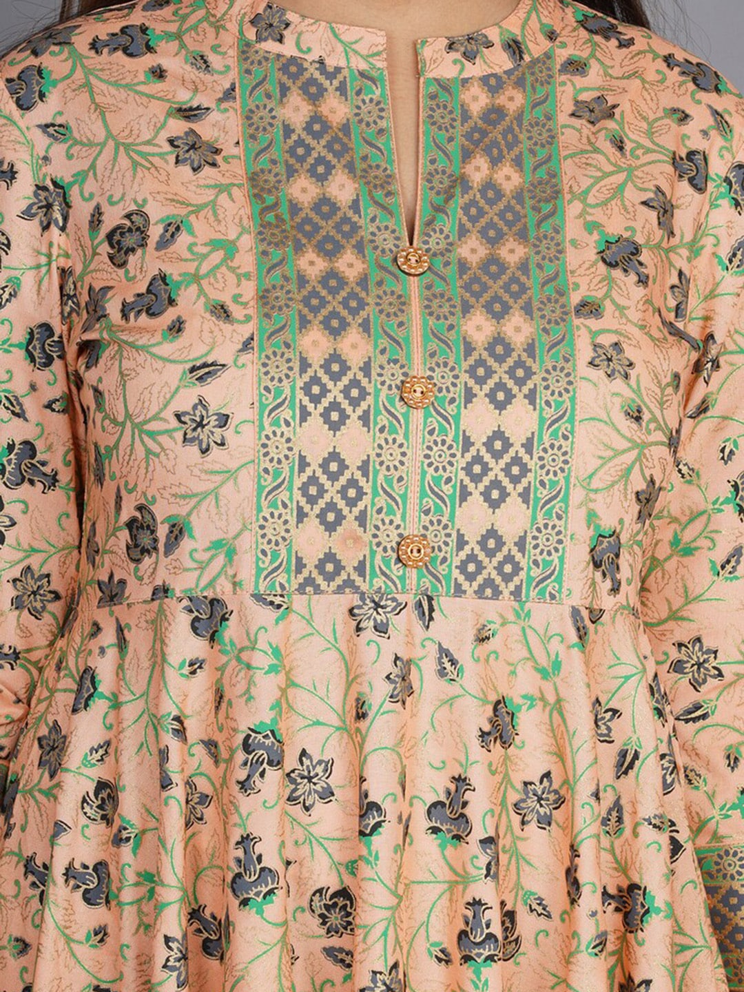 Kalini Women Coral Pink Floral Print Anarkali Kurta