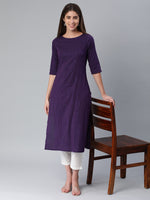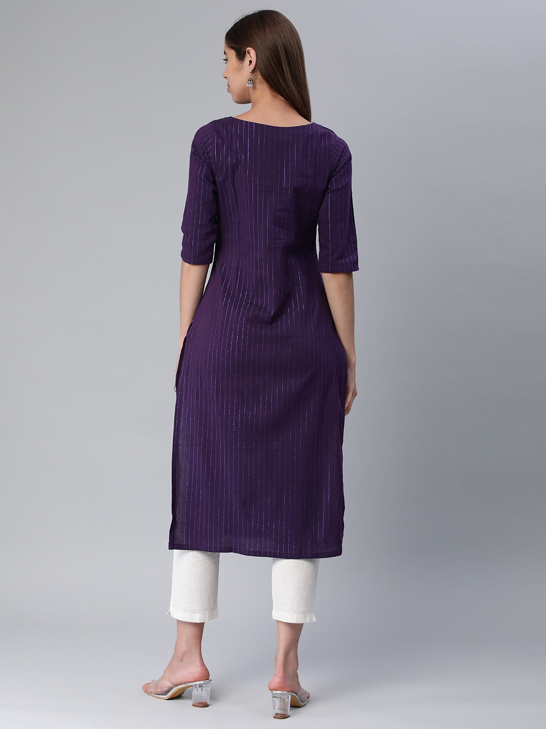 Kalini Women Striped Boat Neck Straight Kurta Product Details Colour: violet Striped woven design Boat neck Three-quarter, regular sleeves Stra...