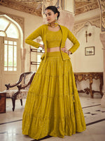 Myra Mustard Yellow georgette Designer SuitMustard Yellow georgette Designer Suit features a Georgette blouse with georgette lehenga. Embroidery is...