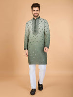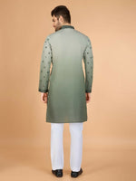 Vastranavya Ombre Green Premium Viscose Silk Thread & Sequence Embroidery work Kurta