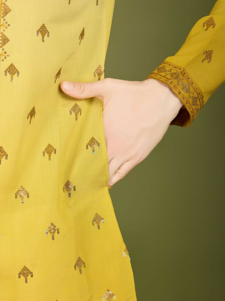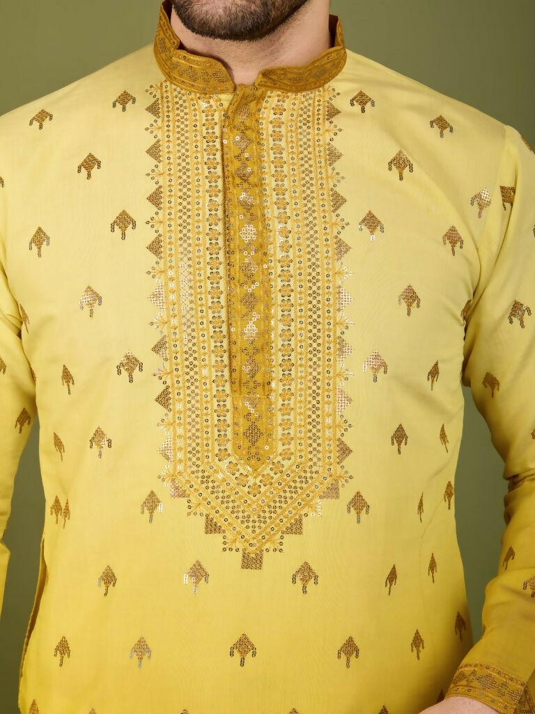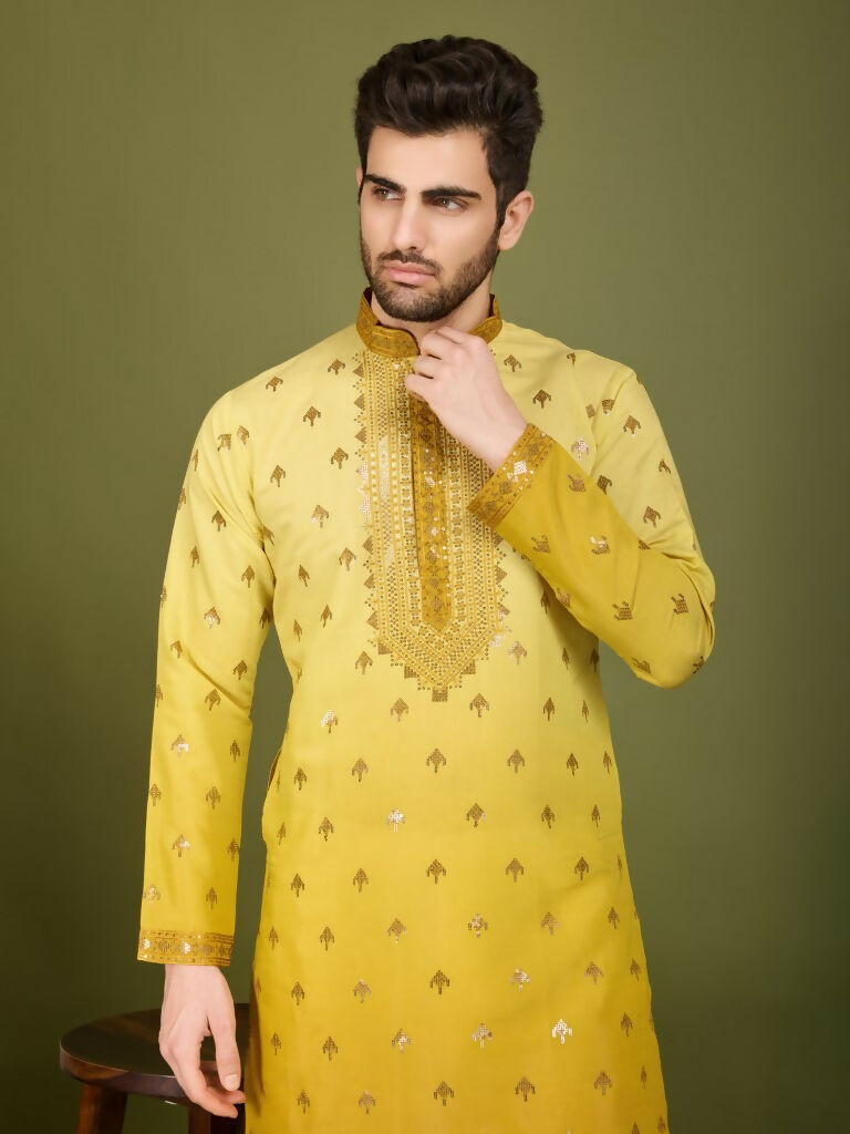 Vastranavya Ombre Yellow Premium Viscose Silk Thread & Sequence Embroidery work Kurta