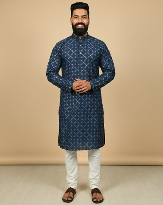 Neera Trendz Navy Blue Heavy Soft Silk Mirror Work Men's Kurta Pyjama