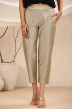 Juniper Beige Solid Silk Slim Fit Pants With a Pocket