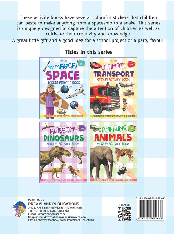 • Full of bright and colourful pictures, stickers, and fun activities ‘My Magical Space – Sticker Activity Book’ includes a variety of activities like matching fun, dot-to-dot, colouring, and more. This book shares a new way to enjoy learning while having fun.