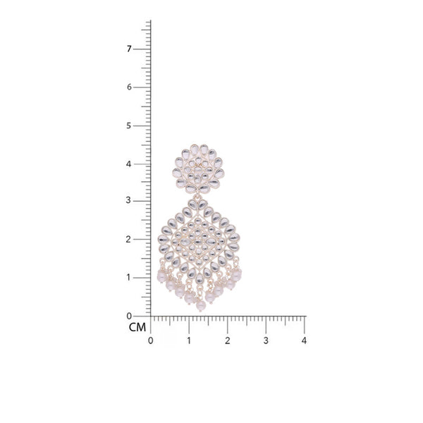 Tehzeeb Creations Gold-Polished Traditional Dangle EarringsAbout the Product: Color: White Material: Brass Plating: Gold Occasion: Regular/Part...