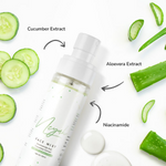 • This facial mist contains goodness of Niacinamide, Cucumber and Aloe Vera extract that's suitable for all skin types, especially acne prone skin. Blemishes can be difficult to remove, and dirty pores are the main cause! The ingredients in this multi-tasker hydrate and strengthen the skin barrier, help reduce the appearance of pores, and keep acne at bay. Cucumber helps refreshing, pore tightening and purifying your skin. It is formulated to maintain complexion into perfect pH balance and help keep skin in its purest state. It helps with clogged and visibly enlarged pores, excessive oils, and dryness.