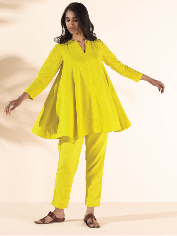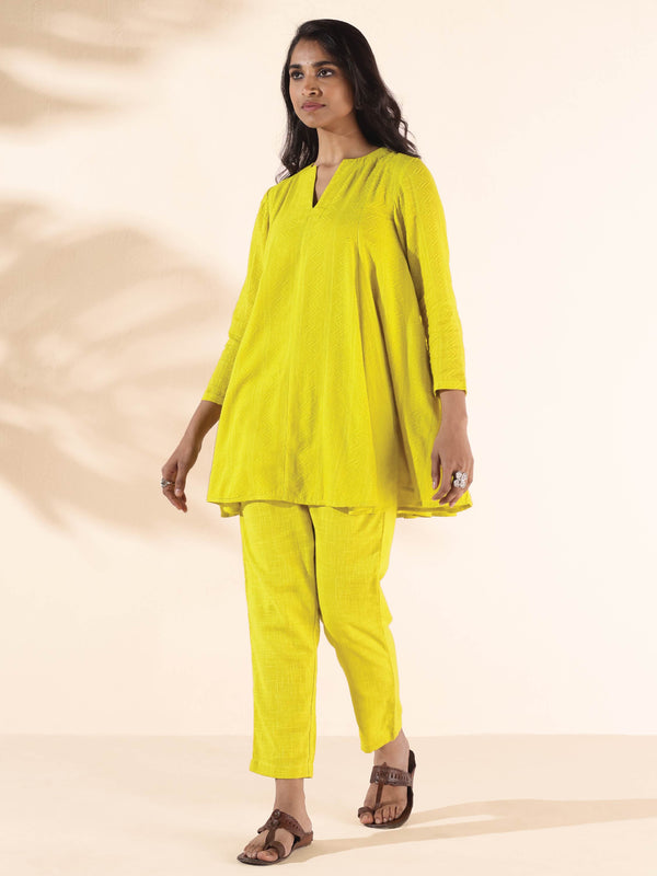 trueBrowns Lime Cotton Dobby Flared Co-ord Set
