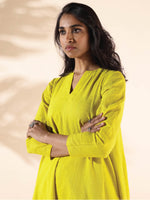 trueBrowns Lime Cotton Dobby Flared Co-ord SetDescription Cotton Dobby Co-ord Set with Round neck slit, three-fourth sleeves in flared fit. Paired ...