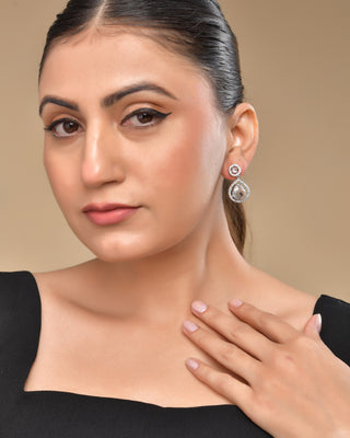 VOJ White Oxidized Multi Layered Stone Studded Earrings