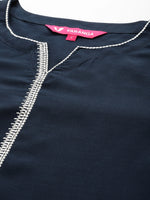 Varanga Women Navy Blue Embroidered Straight Kurta Paired With Tonal Bottom And Dotted Dupatta With Four Sided Fringes