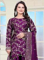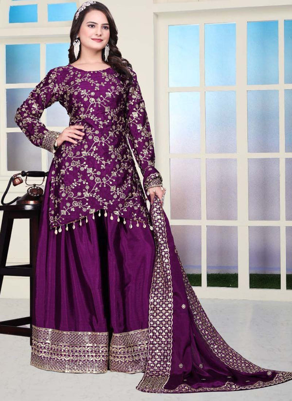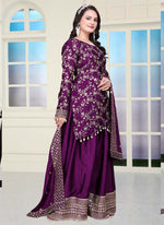 Prazu Fashion Violet Chinon Silk Embroidered Sharara Suit