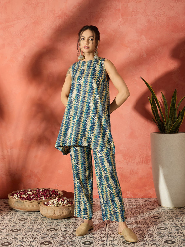 The Teal Leaf Zig-Zag Foil W/S Kurta Pant Set is a stylish and contemporary ethnic ensemble that combines rich color, intricate foil patterns, and a modern silhouette.