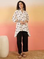 Paired with matching white bottoms, this set is ideal for festive occasions, office wear, or daytime events. Style it with silver or pearl jewelry and embroidered juttis for a chic ethnic look, or keep it minimal with nude heels and subtle accessories for a contemporary, elegant vibe.