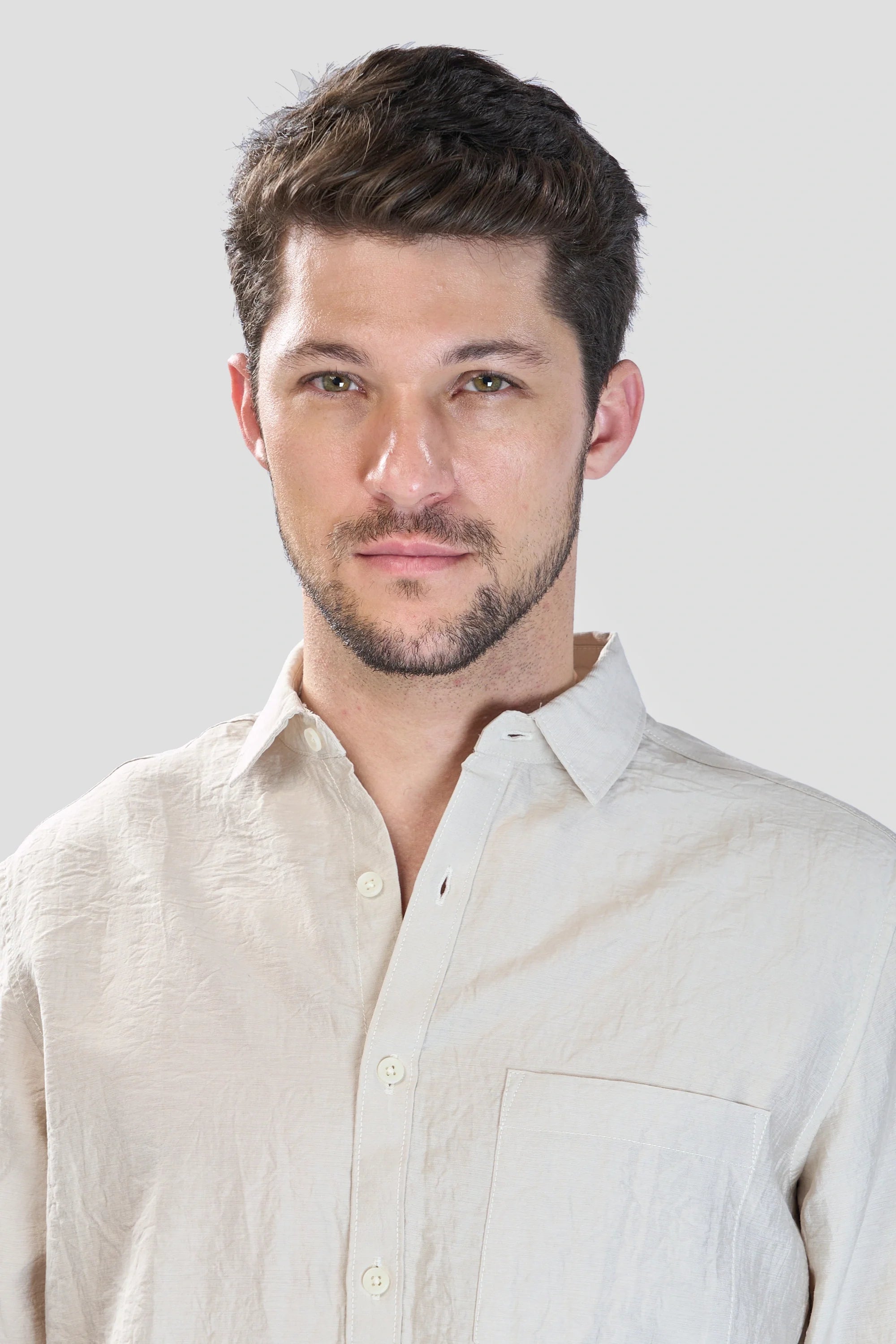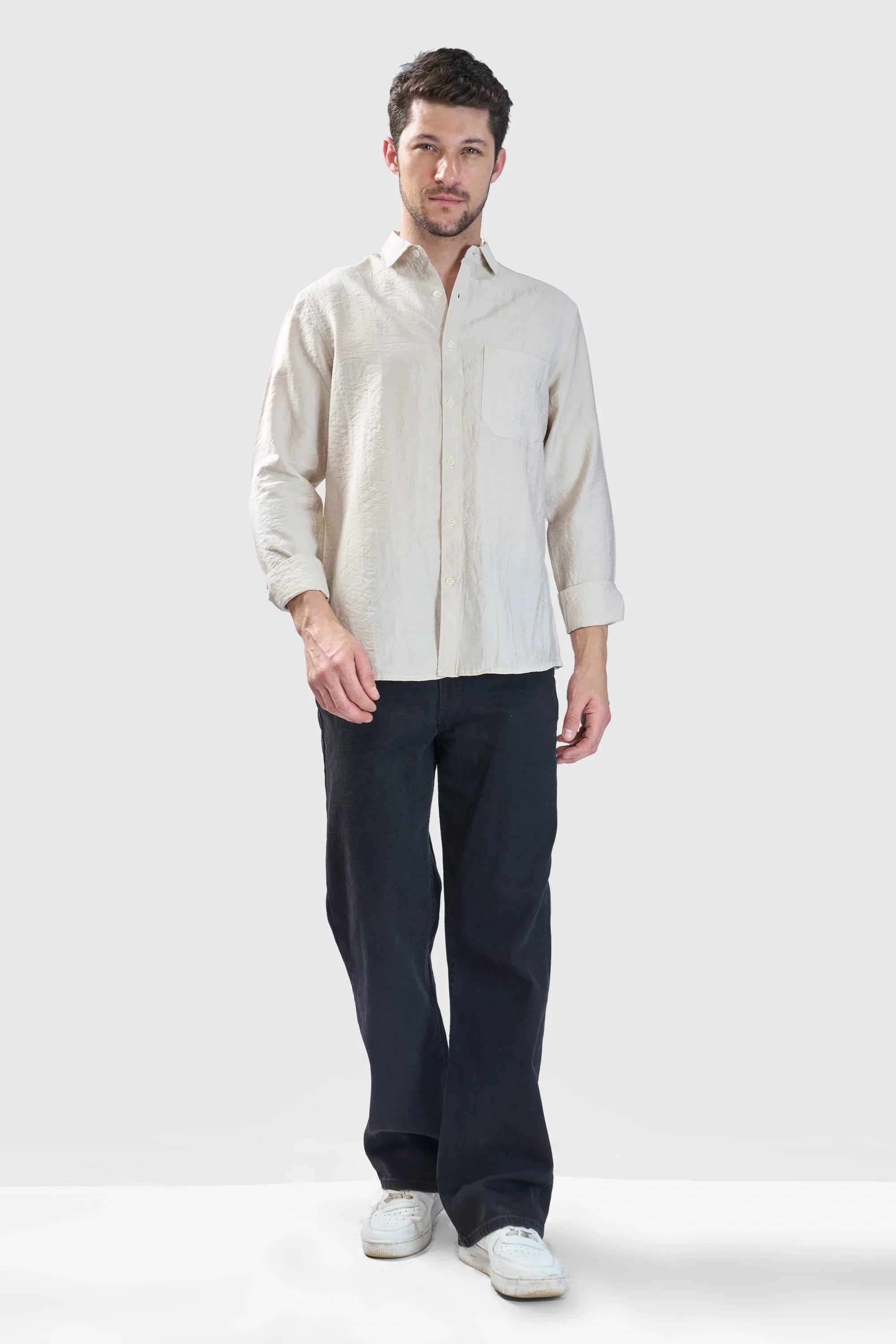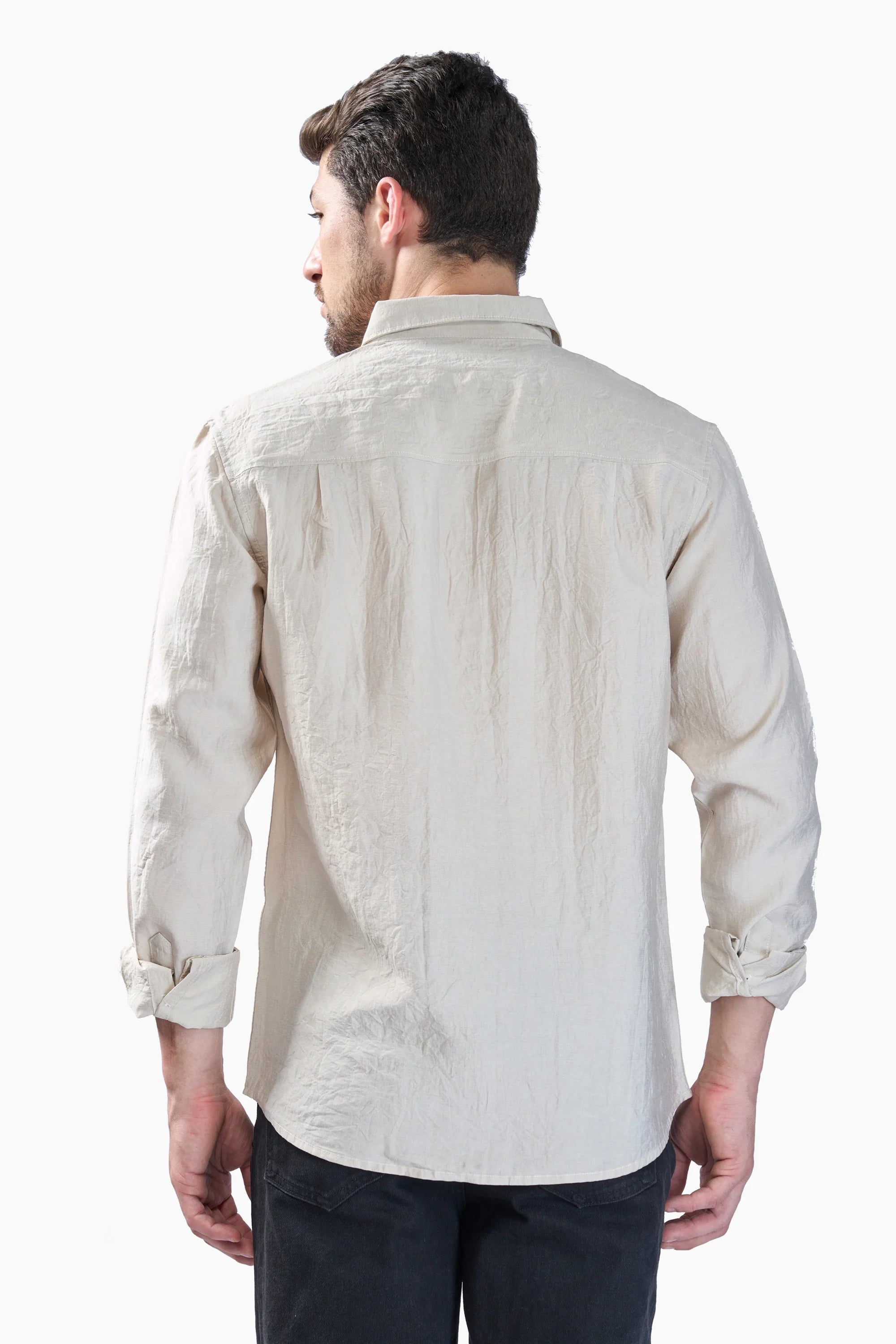 Xkind Beige Crush Wrinkled Look Regular Fit Shirt