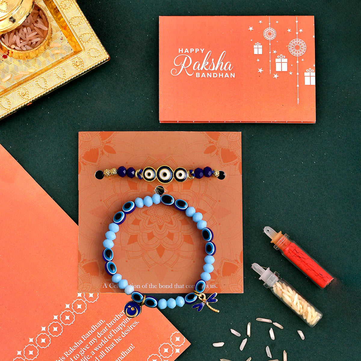 trueBrowns X Voylla Evil Eye Bracelet Style Bhaiya-Bhabhi Rakhi - Freesize