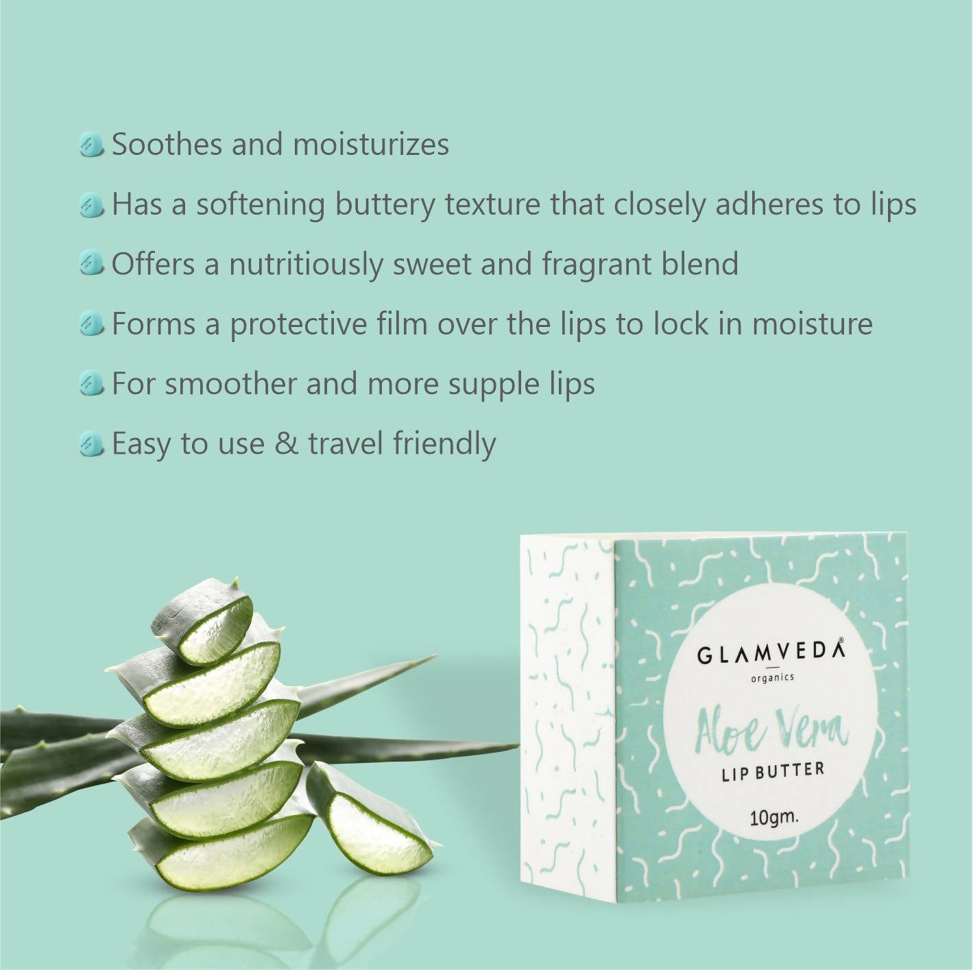 Glamveda Aloe Vera Lip Balm: 10 gm Soothes and moisturizes - Has a softening buttery texture that closely adheres to lips - Offers a nutritiousl...