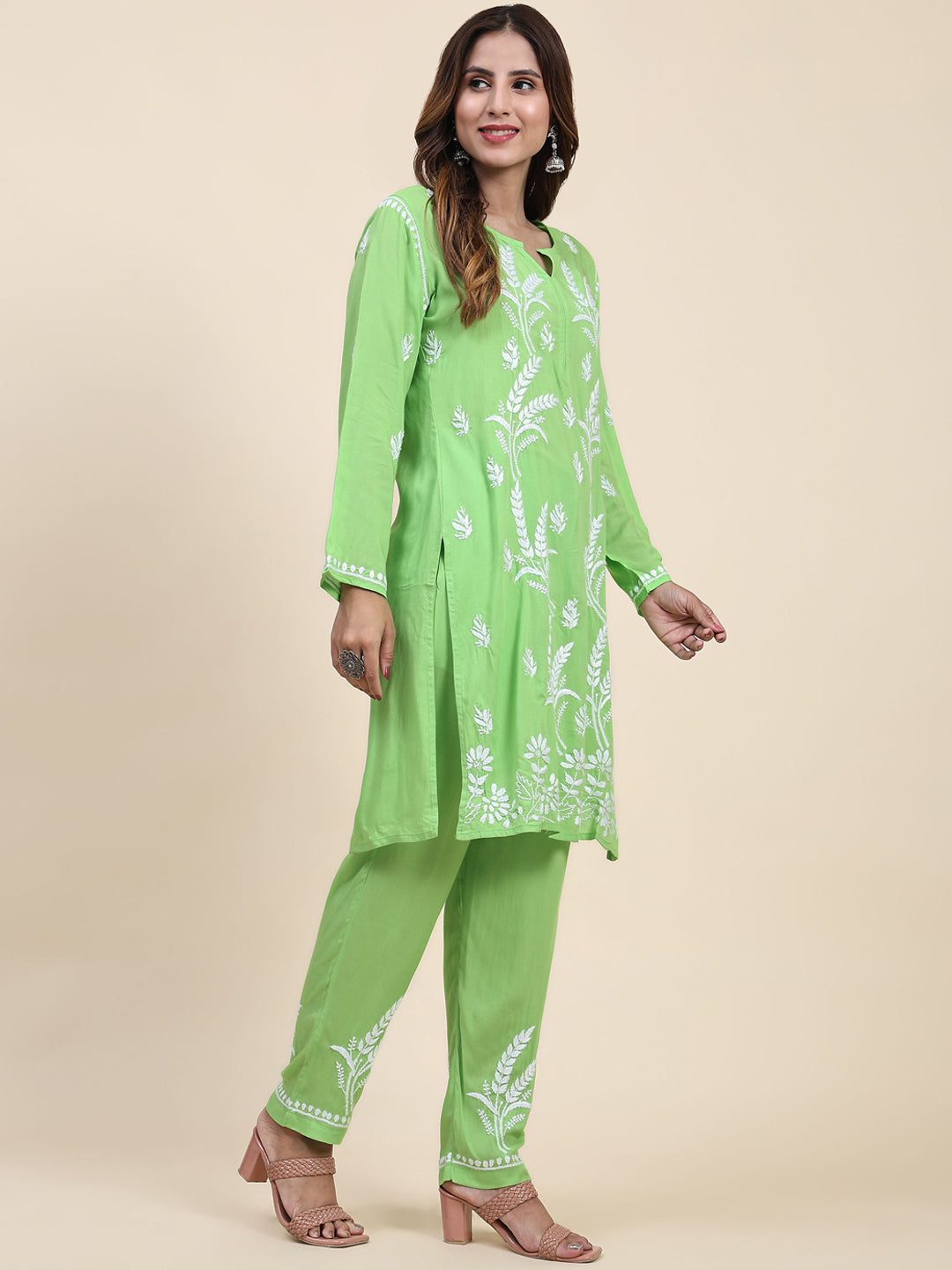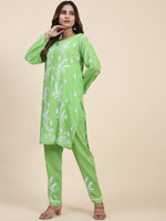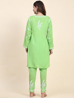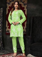 Green and white embroidered Kurta with Trousers