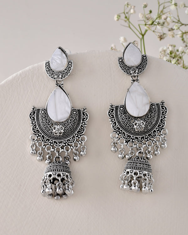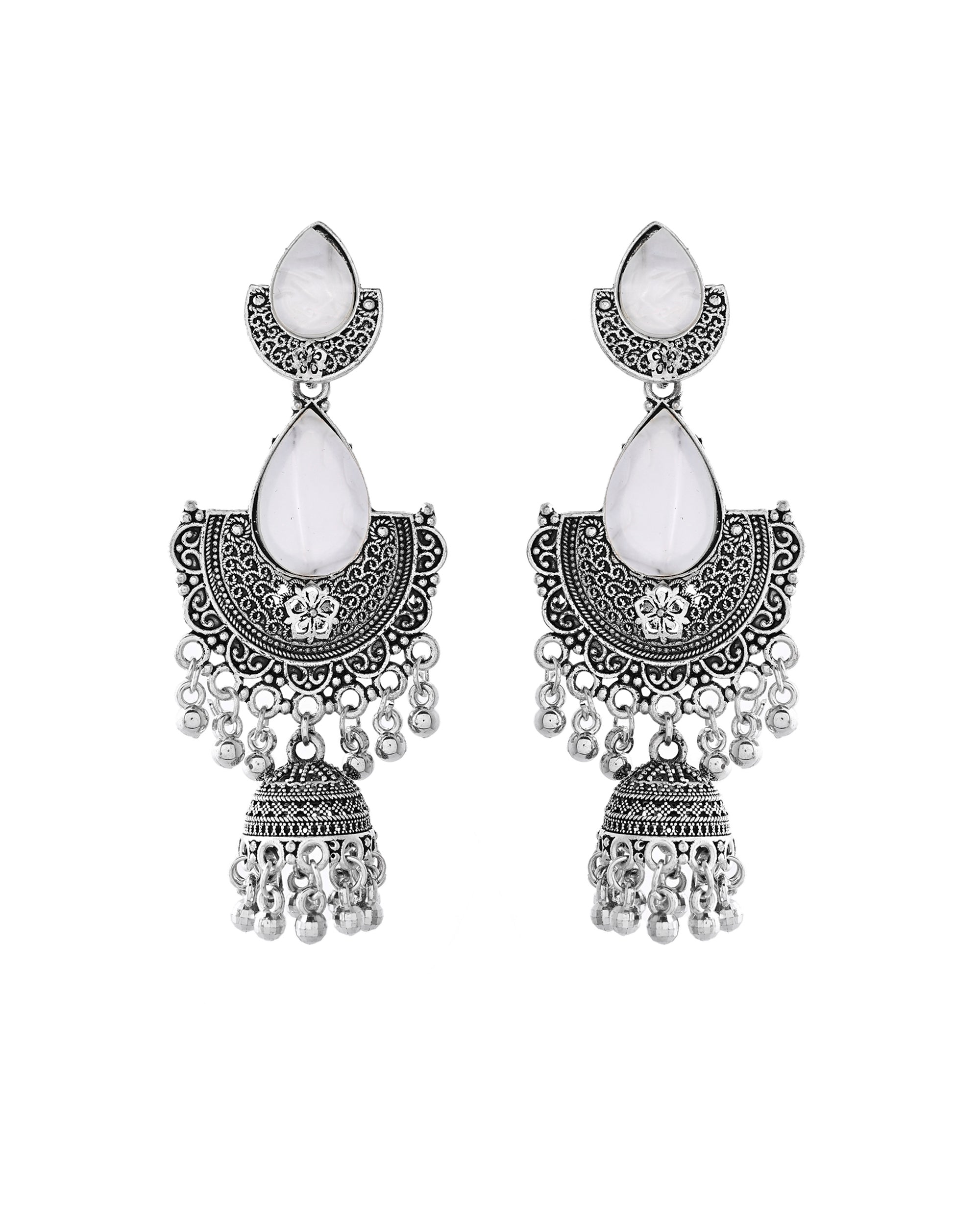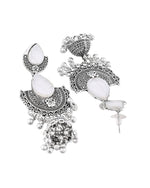 Jewels Nest Oxidized Silver Half Moon Jhumka Earrings with Intricate Design