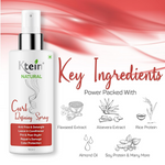 • Styling and Nourishing Spray : Ktein's Natural Curl Spray helps to refresh your curls and improves the texture of your curls making them soft, smooth and mangeable. It is not just a curl styling spray BUT and everyday Curl nourishment spray. The product is made with moisturing and nourishing ingredients like Flaxseeds, Aloevera, Vitamin E, Almond Oil and Protein