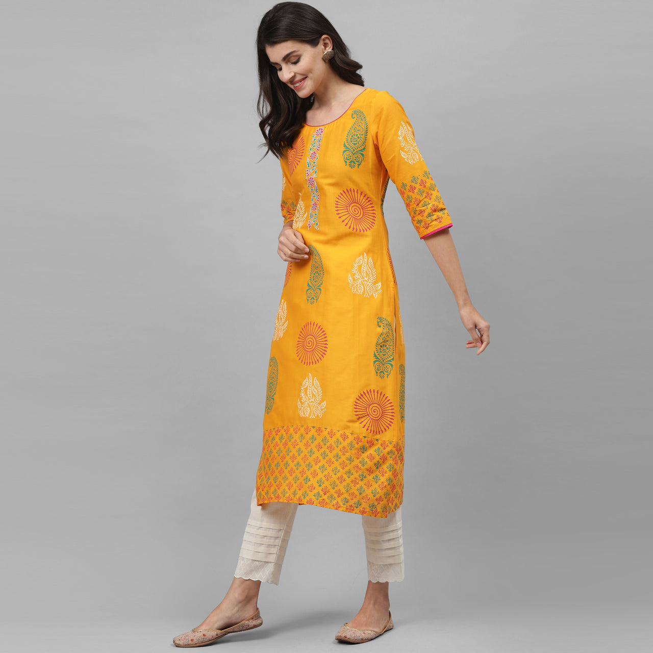 Maai Rayon Hand Printed Kurta Yellow About the product: Rayon fabric hand block print with soft fabric use in all type pants and lower. Additional...
