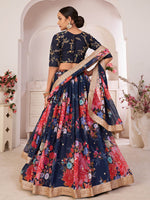 Myra Navy-Blue Digital Printed Georgette LehangaNavy-Blue Digital Printed Gorgette Lehanga Floral Printed And Embellished Sequins Butti Work All Ov...