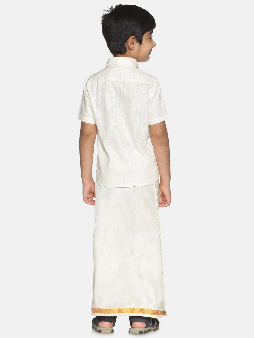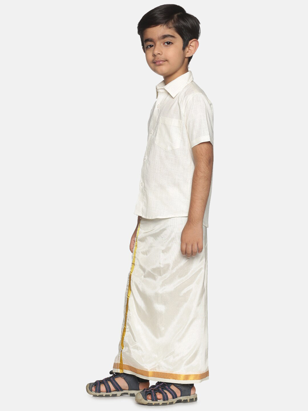 Sethukrishna Boys Cream-Coloured & Gold-Coloured Shirt with Dhoti