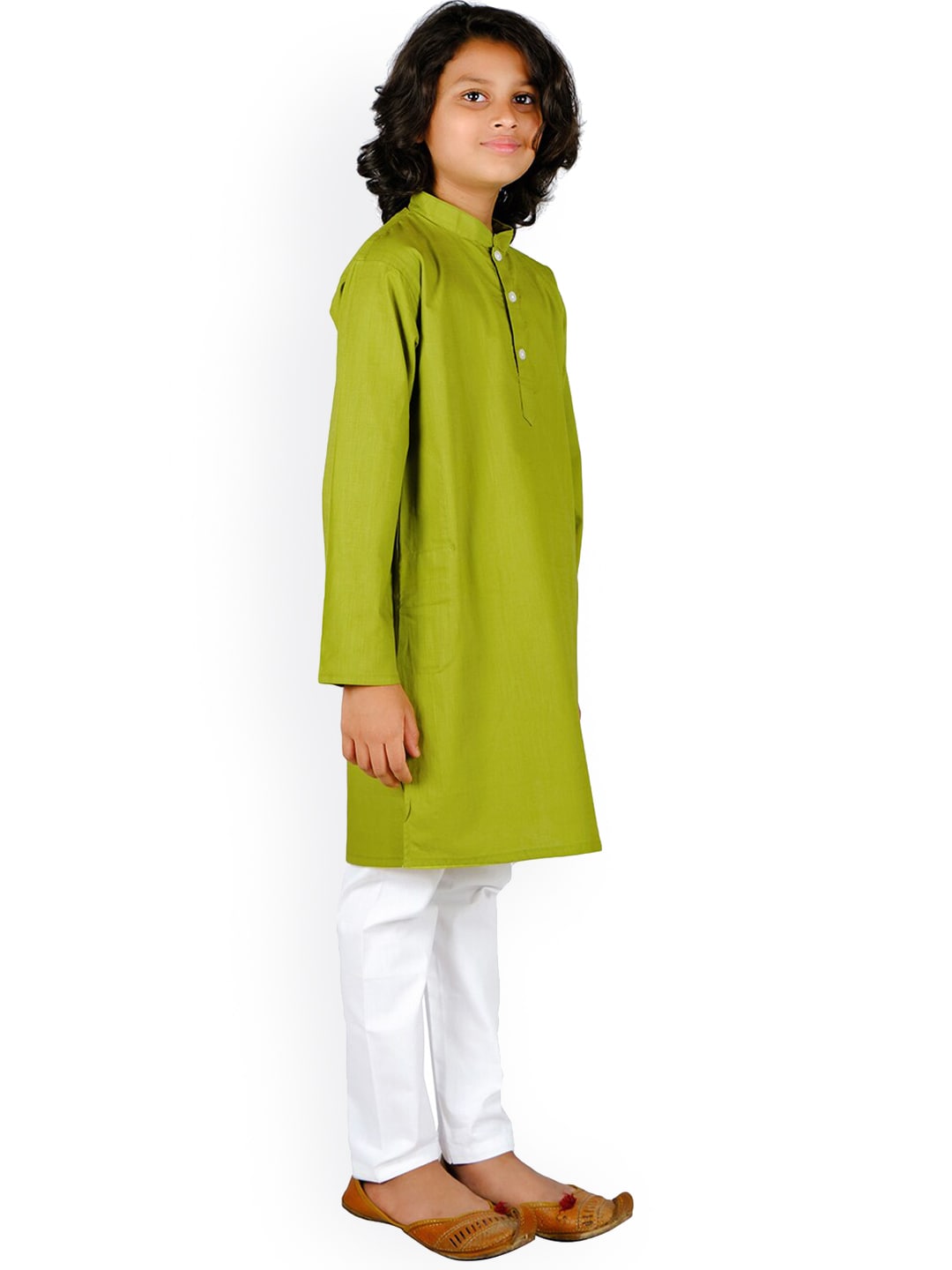 Sethukrishna Boys Green Solid Pure Cotton Kurta Set