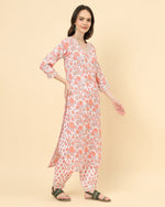 Varanga Women Pink Viscose Rayon Printed Regular Kurta With Trousers & DupattaElegance And Honourable Come Together In This Beautiful Drape. Re...