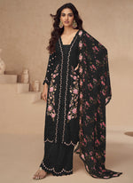 Vegaa Fashion Black Chinon Silk Embroidered Palazzo Suit