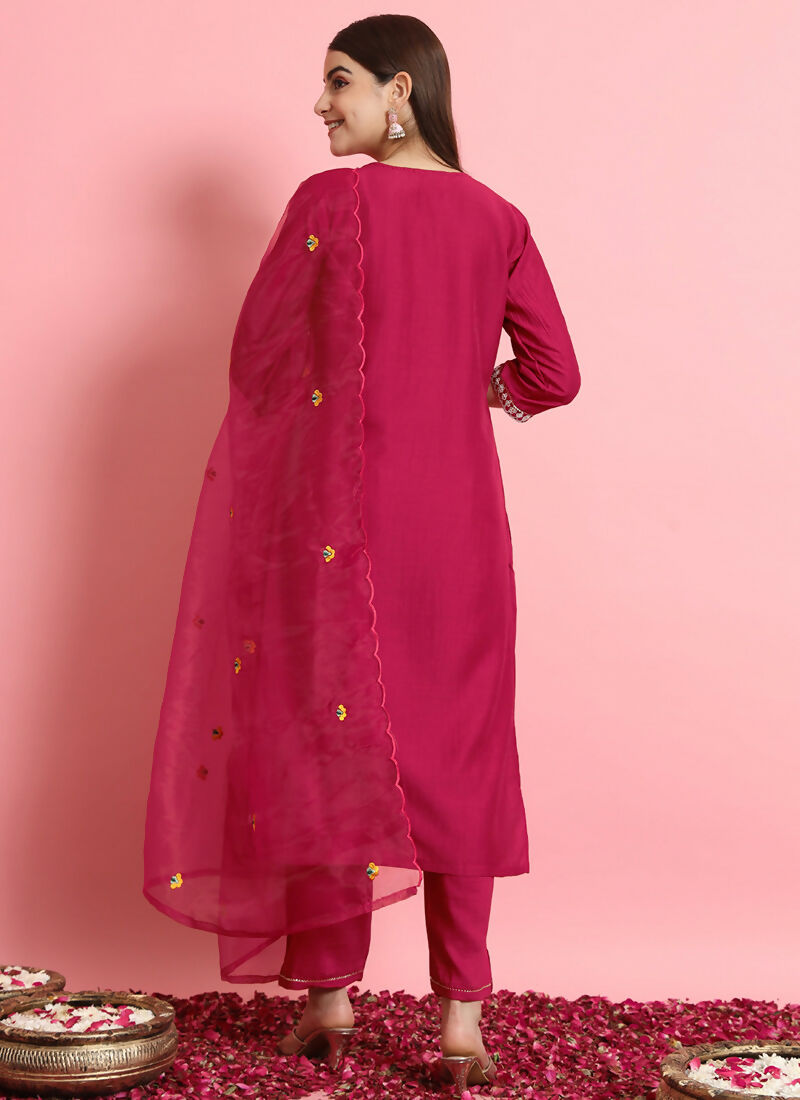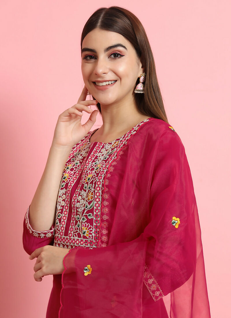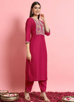 Vellora Rani Pink Embroidered Readymade Suit in Silk Blend for Daily WearMake a bold yet elegant statement with this vibrant Rani Pink embroidered ...