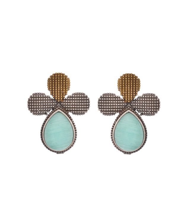 Silver toned elegant earrings studded with teal stones, offering a graceful blend of color and shine. Lightweight and stylish, they enhance ethnic and western outfits alike, perfect for daily wear, festive occasions, or elegant gifting with timeless charm.Legal Disclaimer :Product color may slightly vary due to photographic lighting sources or your monitor settings.