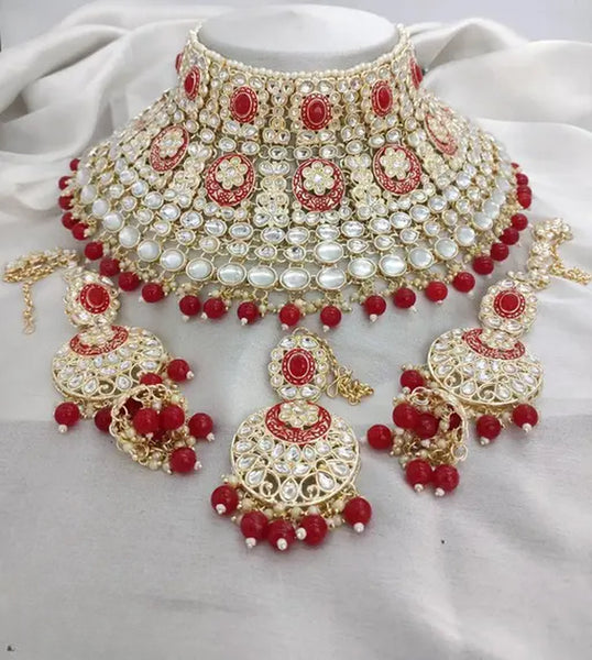 Jewel City Royal Kundan Choker Set with Magenta Beads - Traditional Indian Wedding Jewelry Set with Earrings and Tikka Color: Red Material: Alloy...