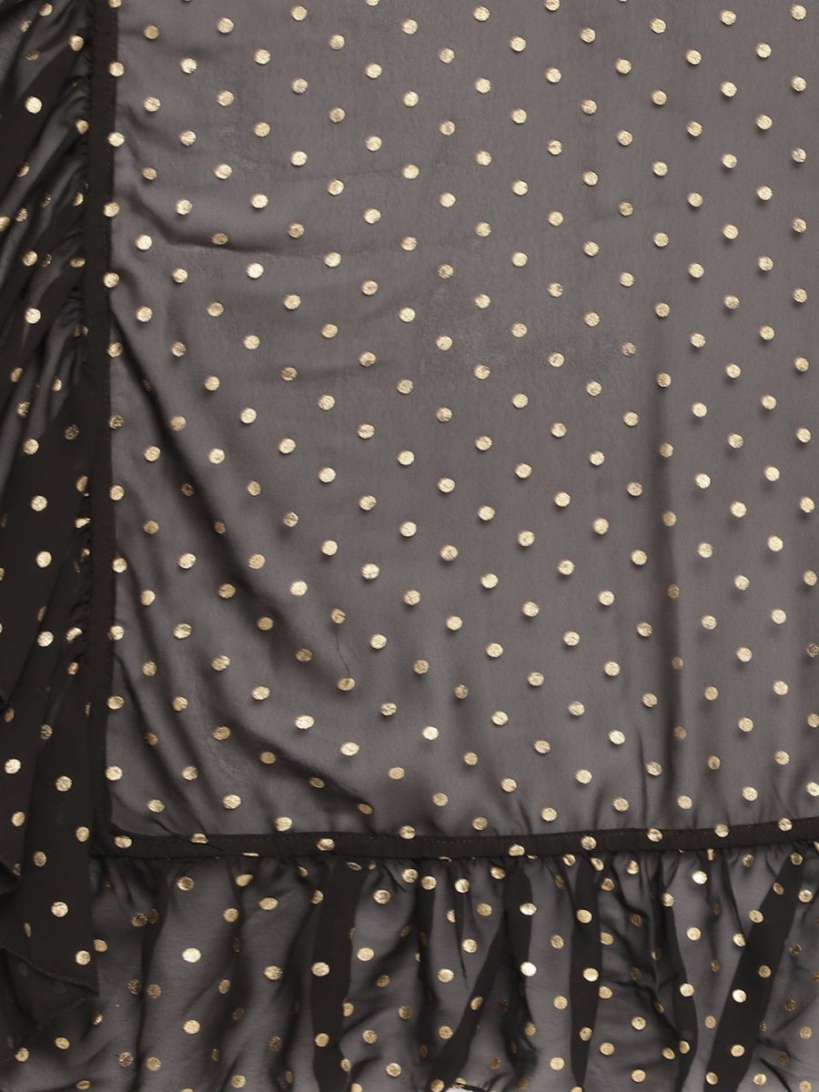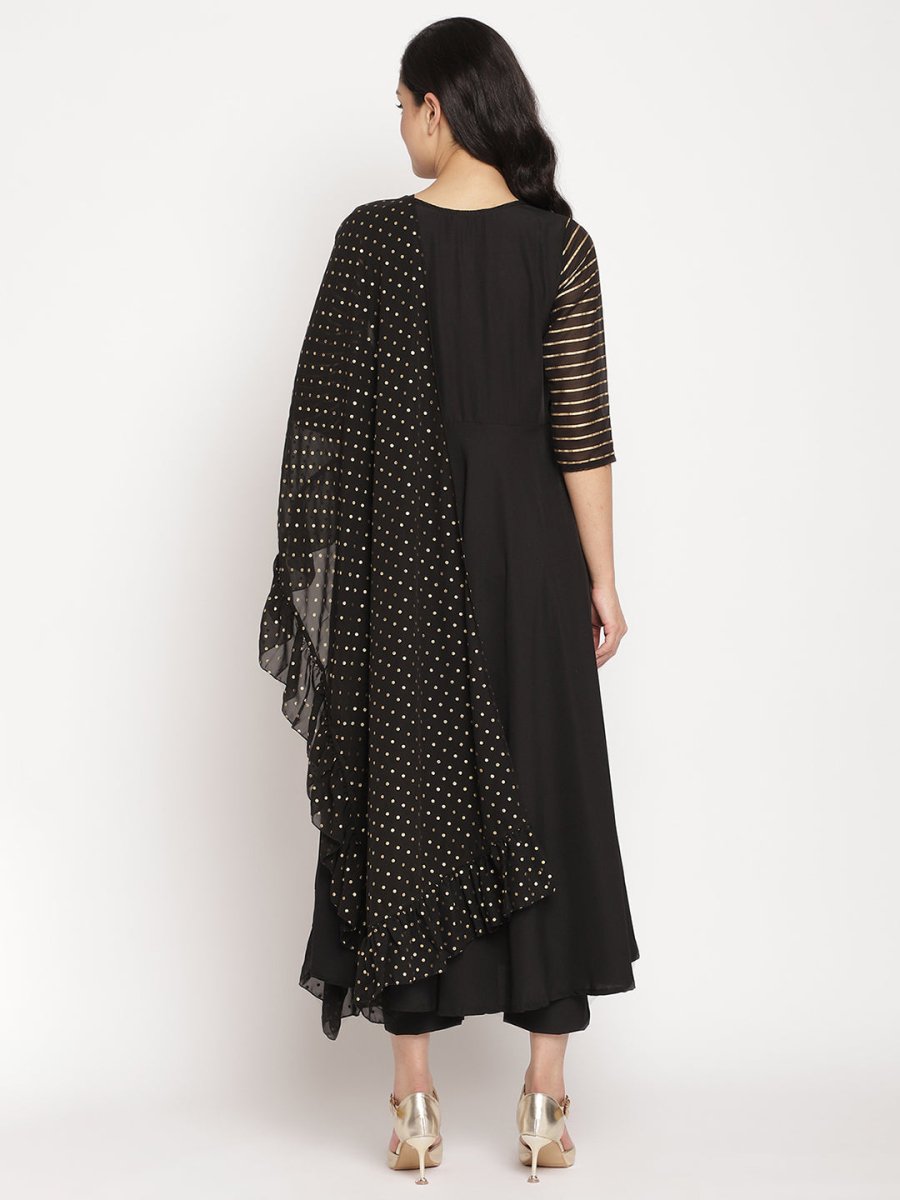 Ahalyaa Women Black Printed Angrakha Kurta With Trousers & Dupatta - XS
