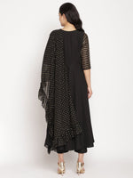 Ahalyaa Women Black Printed Angrakha Kurta With Trousers & Dupatta