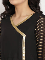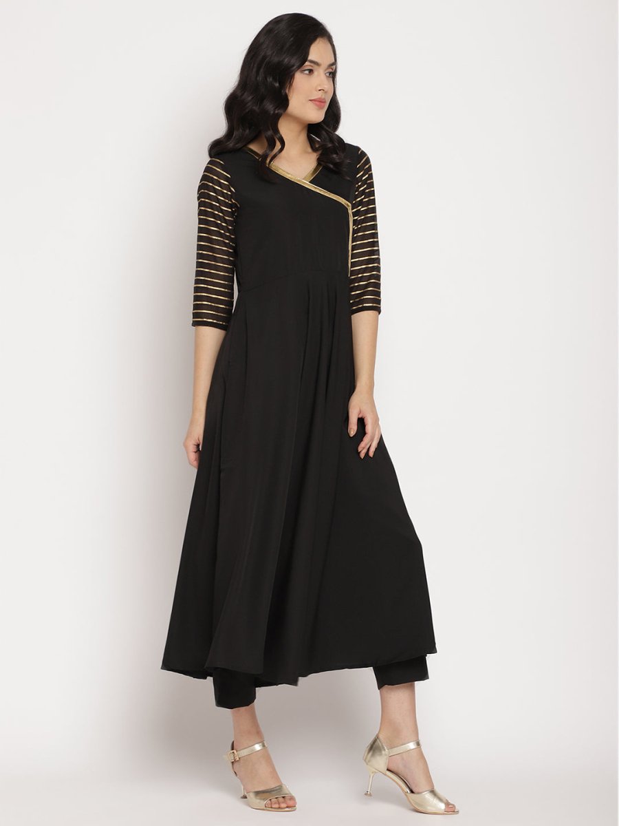 Ahalyaa Women Black Printed Angrakha Kurta With Trousers & DupattaProduct Details: Combining delicacy and elegance, this kurta set exemplifies ...