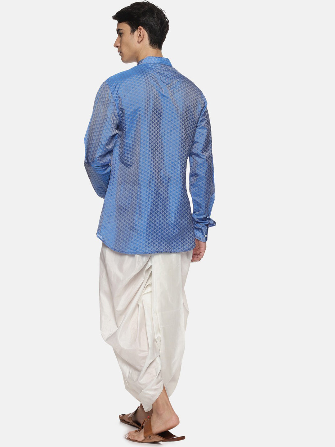 Sethukrishna Men Blue Striped Angrakha Kurti with Dhoti Pants