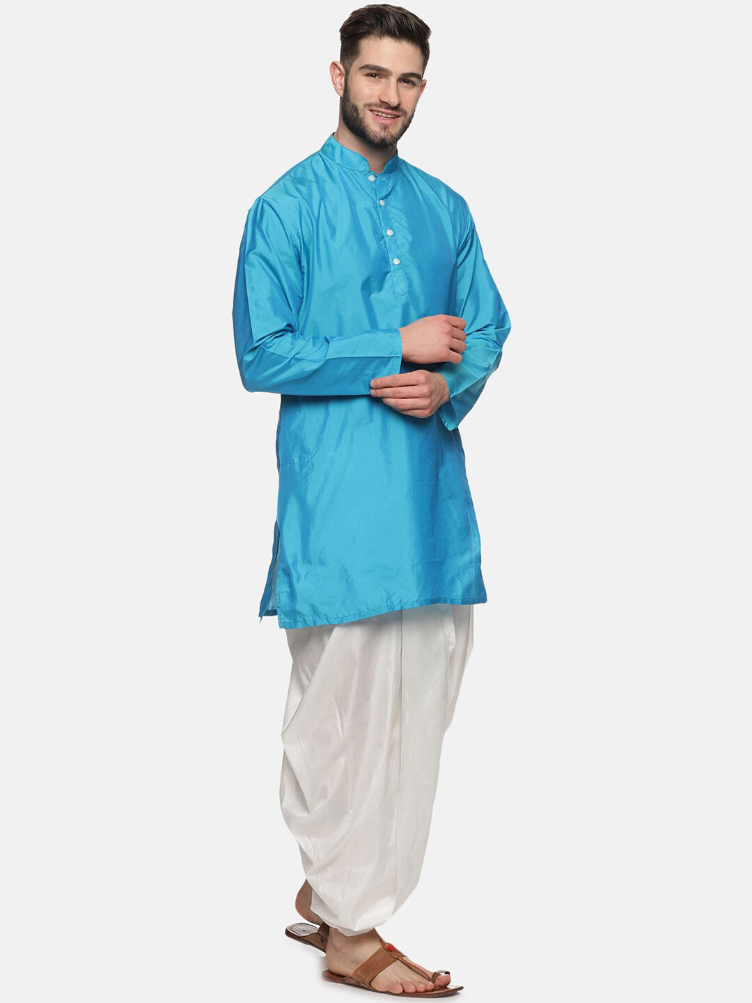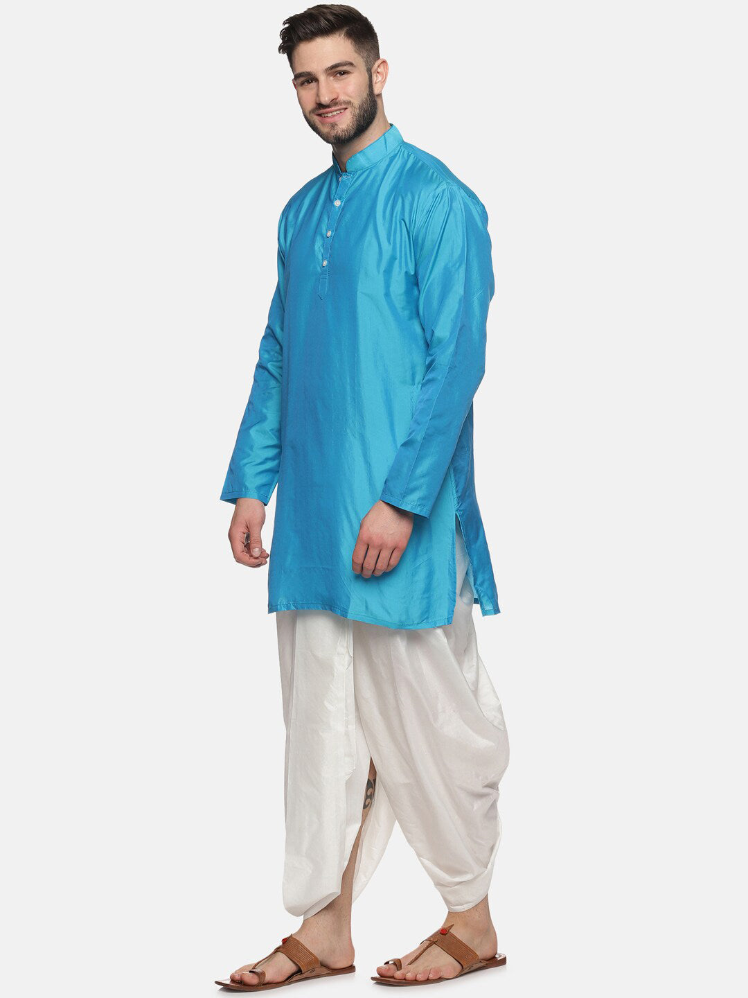 Turquoise blue solid Kurta with Salwar