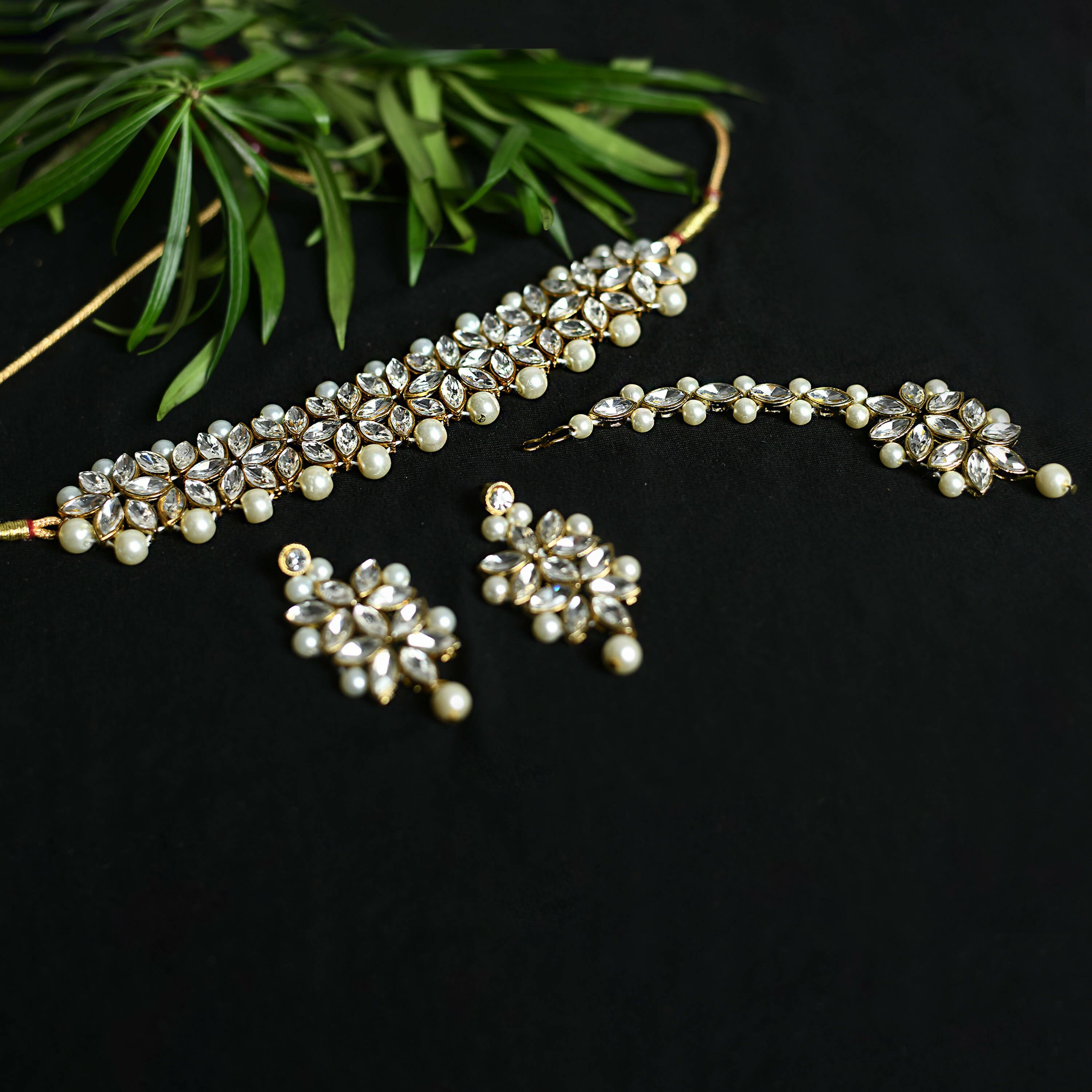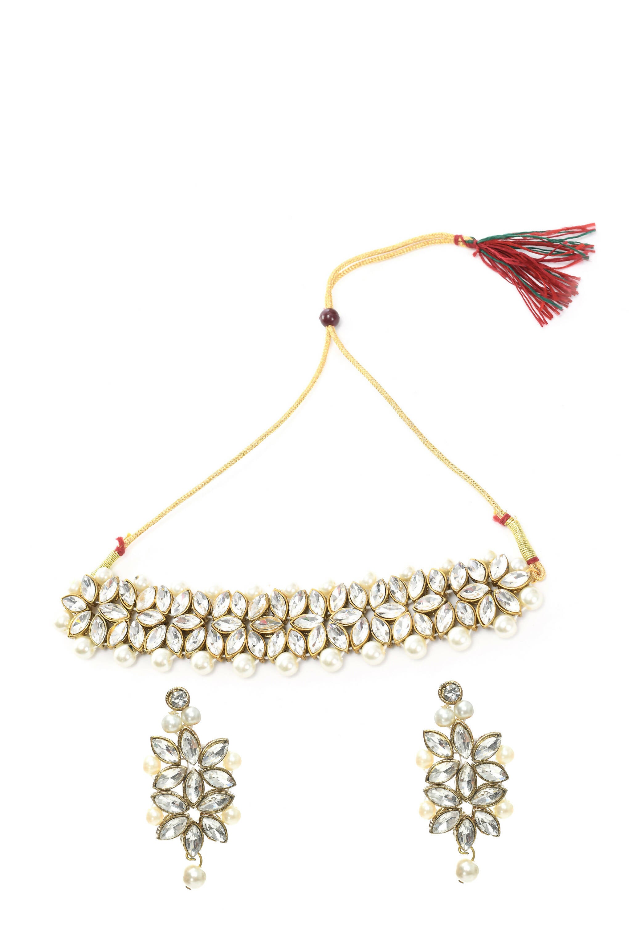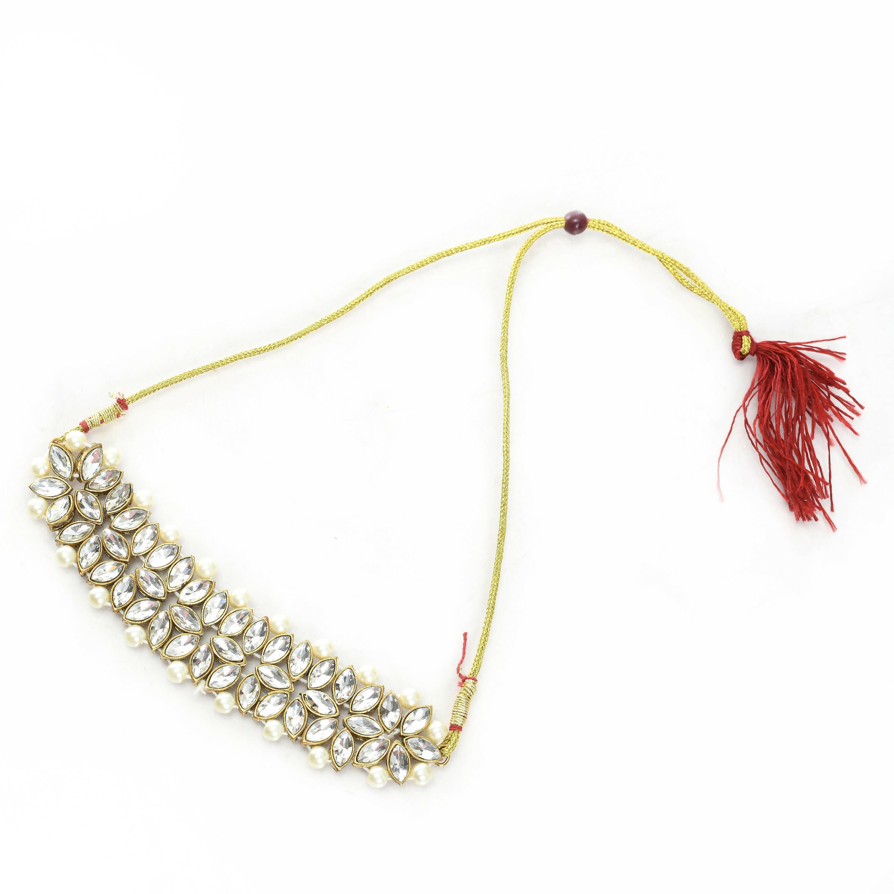 Mominos Fashion Johar Kamal Gold-Plated Brass Finish Kundan/Pearls Choker For Women (White) - Distacart