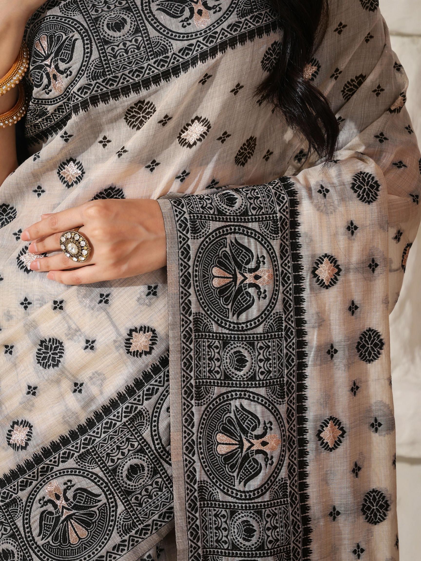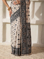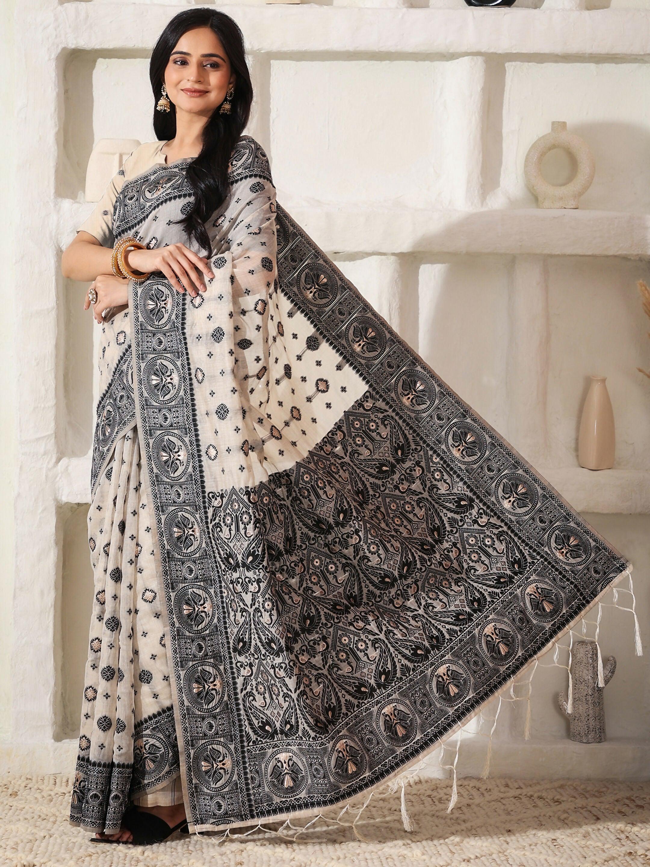Astita Linen Cotton Black & Cream Saree - Free Size