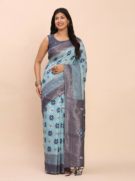 Astita Linen Cotton Sky Blue Saree - Free Size