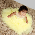Pink Cow Fashions Yellow Gown With Organza Chest & Net Layer Ghera - 2 - 3 Years