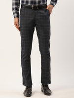 Jainish Men's Black Window Checked Formal Trousers ( FGP 272 Black )Black Cotton Window Checked Slim Fit Trousers, has a button closure, four pocke...