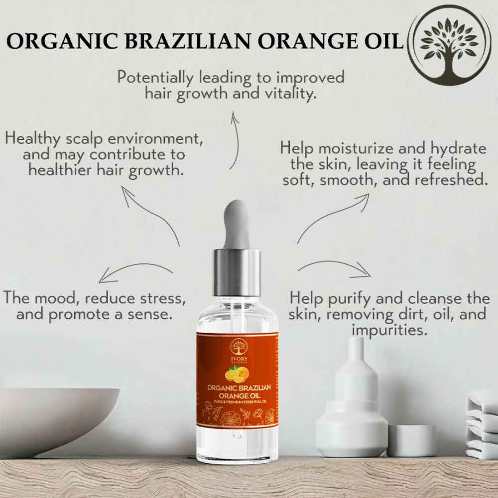 Introducing Ivory Natural Organic Brazilian Orange Oil, your go-to solution for a range of wellness and beauty needs this natural, premium sweet orange essential oil, carefully extracted from the finest Brazilian oranges, is perfect for aromatherapy, skincare, and hair care, offering a refreshing, revitalizing experience for radiant skin, nourished hair, and an elevated mood.