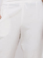 Yufta White Linen Cotton A Line Kurta Dupatta Pant Set - Distacart Yufta White Linen Cotton A Line Kurta Dupatta Pant Set