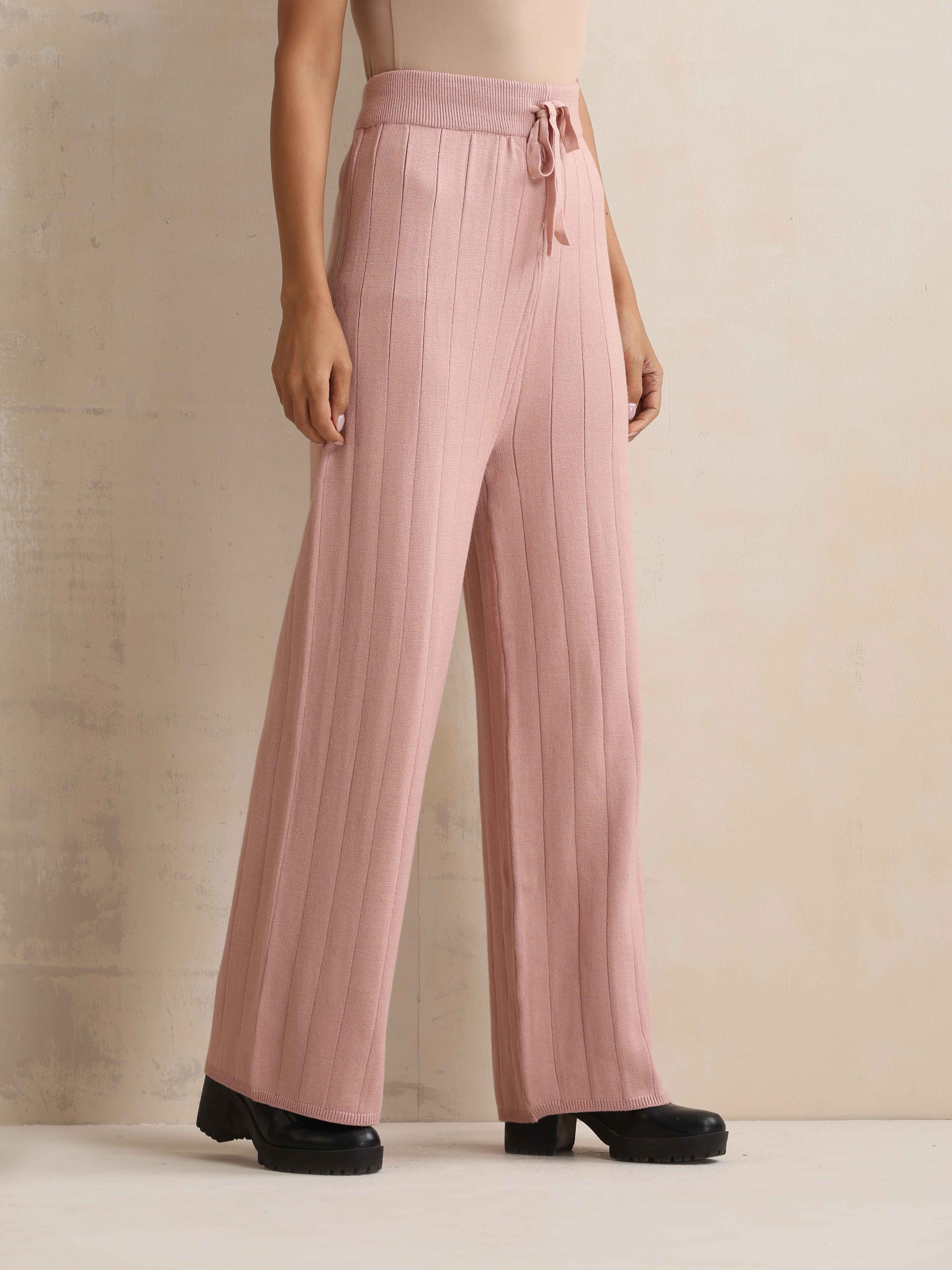trueBrowns Pink Woollen Flared Pants - Freesize