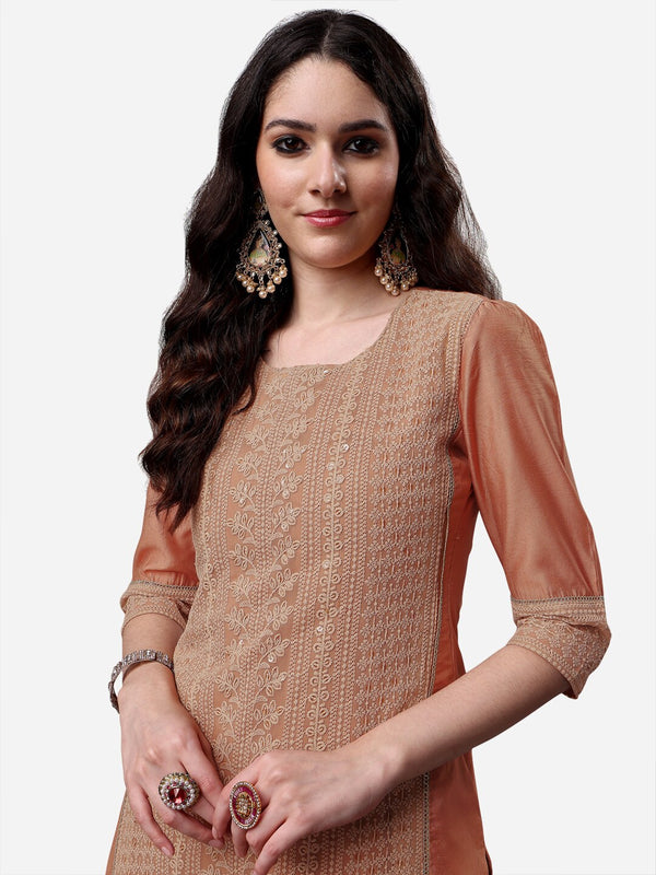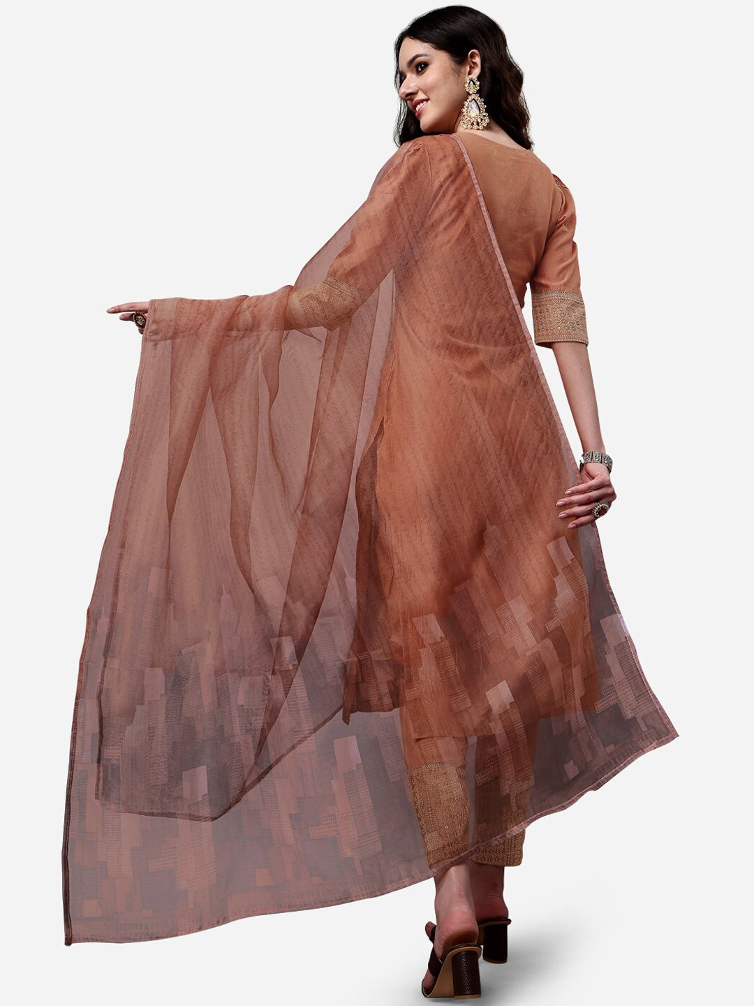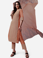 Brown and peach embroidered Kurta with Trousers & dupatta