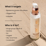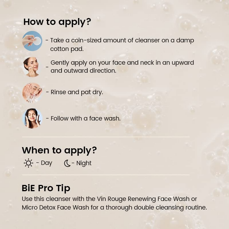 • Apply on a damp cotton pad and gently swipe on your face and neck in an upward and outward direction. Follow with a face wash. Can be applied in the morning and at night.