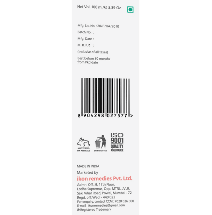 • Allantoin, Salicylic Acid, Aloe vera Extract, Arjuna Extract, Tulsi Extract, Glycerine, Mint Extract, Neem Extract, Niacinamide, Tea Tree Oil, Triclosan, Haridra Extract, and Zinc PCA.